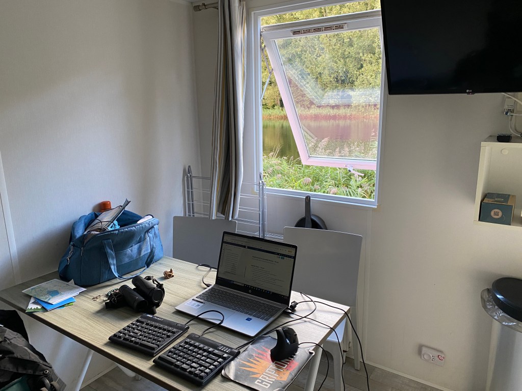 While researching where to stay, I happened upon the “EuroParcs” website and discovered that there is a camping area just 20 minutes outside of Amsterdam that happens to be next to one of the best birding areas in Amsterdam: the Amsterdamse Bos. I saw that they had little cabins right on the water for less than a cheap hotel in the city and said, “TAKE MY MONEY!” Look at the view from my adorable little cabin!!